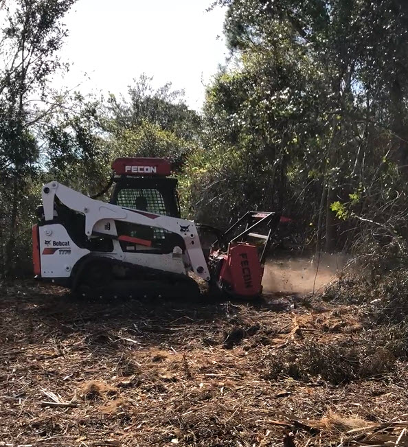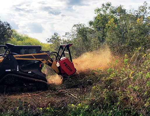 Fecon introduces the Blackhawk knife-tool mulching head, which quickly and efficiently shreds standing vegetation and processes material on the ground. Designed specifically as a knife tool mulcher, every aspect of the Blackhawk, including rotor diameter and size, the ratio of knives to the rotor, cutting chamber, even the hydraulic lines, contribute to maximizing its production capacity. Ideal for skid steer and compact tracked loaders with hydraulic flows of 27 to 45gpm, this new mulcher features 30 knife tools and has a 76” cutting width. It is an excellent tool for clearing brush and vegetation, shredding material in woodland urban interface zones, clearing rights-of-way, lot clearing and clean-up, site preparation, and more.