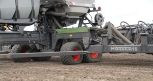 The plots were planted with a Fendt Momentum planter equipped with the Load Logic system to distribute the weight of the planter, seed, and liquid fertilizer across all the planter’s tires to lessen the load on the center transport wheels and reduce compaction near the center rows. The planter’s in-line tandem center transport wheels were equipped with very-high flexion tires and an auto tire inflation system that constantly adjusts tire PSI, depending on planter weight to minimize pressure on the soil.