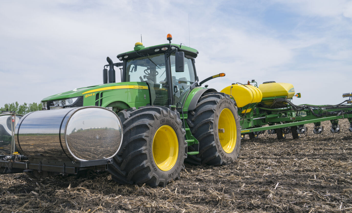 The combination of Goodyear Optitrac LSW1000/40R32 fronts and LSW1100/45R46 rears offers years of proven performance in the aftermarket, demonstrating significant traction, flotation, and ride quality benefits over a traditional row crop dual setup — all at a comparable price to duals.