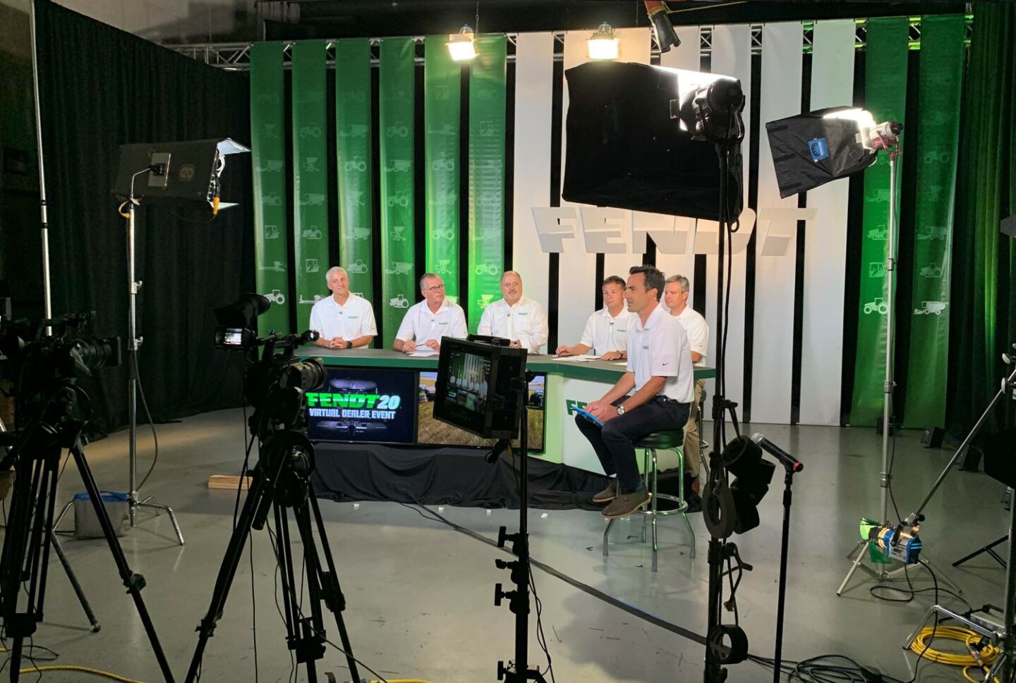 AGCO rolled out five new Fendt products to North American audiences on August 13 and 14, 2020 via live YouTube broadcasts. Pre-recorded walkaround videos coupled with lively in-studio commentary and Q&A with AGCO leadership provided engaging content to dealerships and media representatives. (Left to right) Eric Hansotia, senior vice president & chief operating officer, AGCO Global; Bob Crain, senior vice president & general manager, AGCO North America; Bill Hurley, vice president, Aftersales, Customer Service & Distribution Development, AGCO North America; Joe DiPietro, vice president Sales & Marketing, AGCO North America; Conor Bergin, brand marketing manager, Fendt, and Morgan Stallings, director, Fendt Brand Marketing. Courtesy of news.agcocorp.com