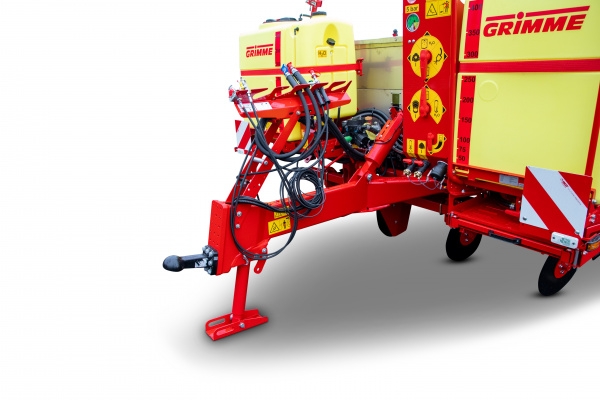 For easy and convenient coupling resp. uncoupling of the machine, all available drawbars for the trailed GL 430 cup-platers are now equipped with a hydraulic jack to stand as standard. At the same time, the GL 430 receives a new hose cabinet for the hydraulic and air connections. Furthermore, the hose routing has been optimized for simplified connection with the tractor.