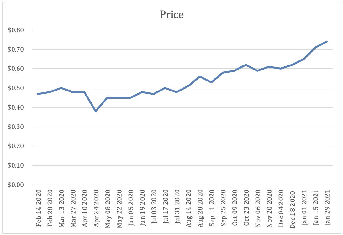 In April 2020, the U.S. spot price for resin (LLDPE – Inj) touched $.38/lb. Today the same product is up 95% to $.74/lb. in nine months. COVID’s impact on the economy and the uncertainty ahead for the world economy contributed to the low price last April. This rapid acceleration causes issues for anyone manufacturing plastic products or products packaged in plastic. Manufactures without a process to increase costs as the resin price explodes to the upside will be challenged to operate at a profit.
