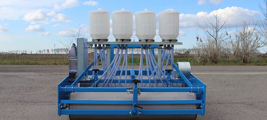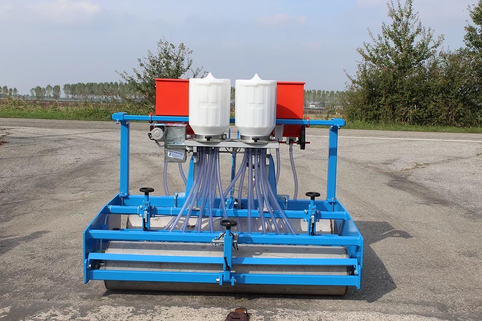 -SP 94: The SP 94 model was created to perform first rolling, sowing and second rolling to cover the seed in a single operation, in order to considerably reduce processing times. The rollers allow the advancement even in the most difficult soils and perform the important function of flattening and compressing the soil, ensuring a constant depth for all the sowing elements. The seeder is modular and custom built. There are two versions: towed to be combined with the tractor or self-propelled. SP 94 is mainly used for sowing radish, rocket, packchoi and valerian, but it adapts to any type of seed.