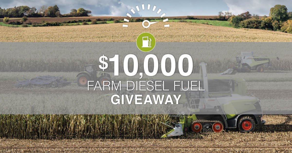 To register to win, eligible entrants can visit fuel.claas.com now through June 30, 2021, to submit their online entry form. One grand prize winner will be selected to win the $10,000 in farm diesel fuel. No purchase is necessary to enter or win.