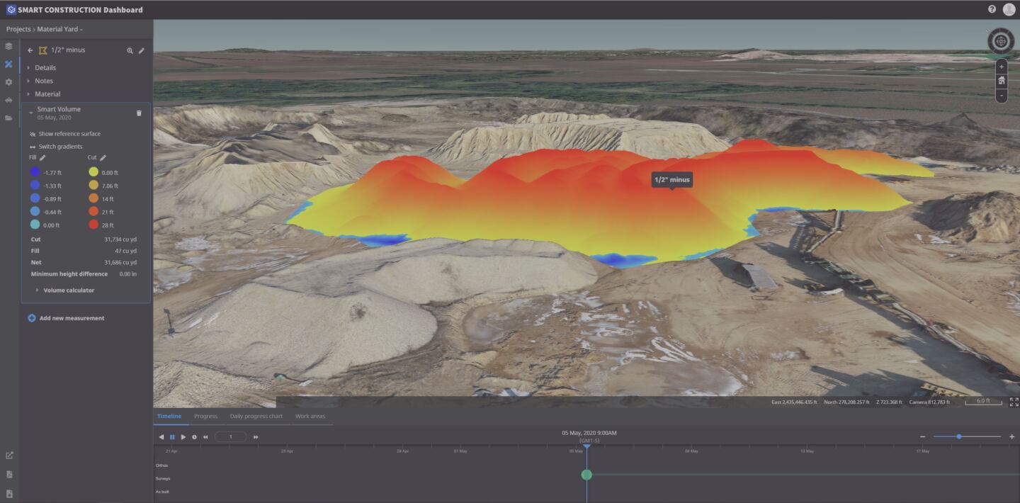 “What is really cool is that the flight surface data from our drone is loaded to the Smart Construction Dashboard and we can very quickly see changes—the actual progress. Technologies that let operators do the job one time and do it correctly increase efficiency, so it’s been a great tool for us,”