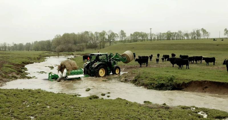 We were rapt when we got the invite from James Doran to visit his ranch, Brookhill Angus in Flemingsburg, Kentucky to help him tell the story of his journey to regeneratively raise his seed stock. For James, caring for animals is tied hand-in-hand to caring for the land, the soil, and the planet. Each needs the other, so the Hustler Trailed Chainless TX205 double bale processor was the perfect fit for James’ ranch management strategy.