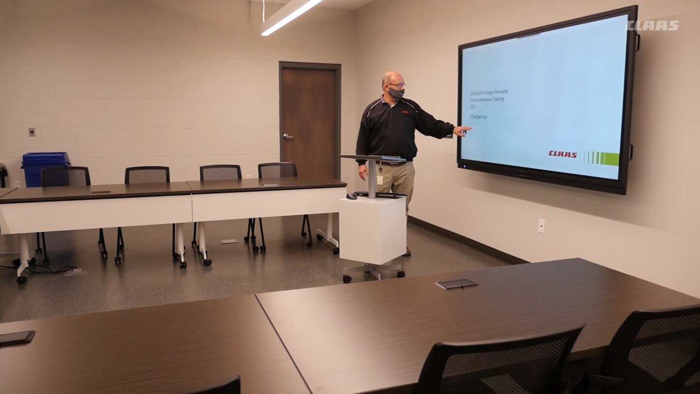 Three classrooms provide a focused learning environment and include advanced technology to host both on-site and virtual training to the Claas dealer network. Temperature-controlled equipment bays allow technicians to get practical, hands-on experience with the largest Claas machines, from LEXION combines to JAGUAR forage harvesters and AXION tractors.