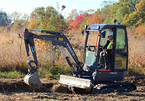 The Volvo electric machines produce zero emissions and have significantly lower noise levels than diesel machines. These qualities are especially beneficial when working in a natural area like the refuge, which is home to a diverse array of grasslands, wetlands, and woods that attract red foxes, painted turtles, osprey, river otters, and countless other species.