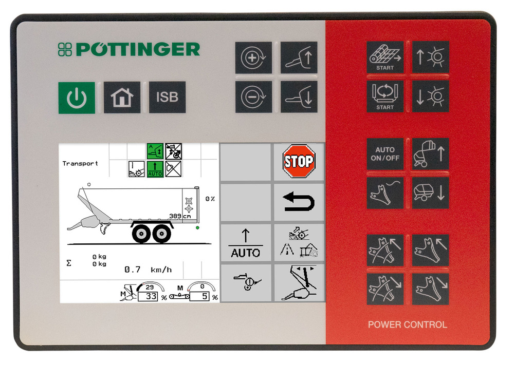 The new entry-level Power Control terminal can be used to operate a wide selection of Isobus-capable machines made by Pöttinger. The most important feature is the keys that are printed with the relevant machine functions to ensure intuitive operation for both experienced and newbie drivers.