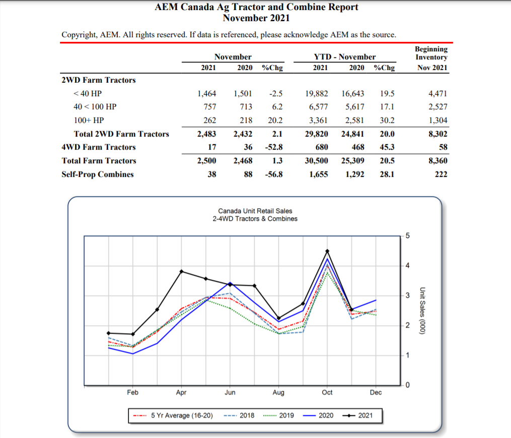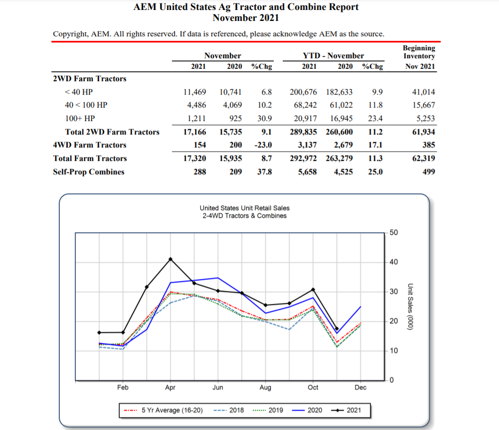 The full reports can be found in the Market Data section of the AEM website under Ag Tractor and Combine Reports.