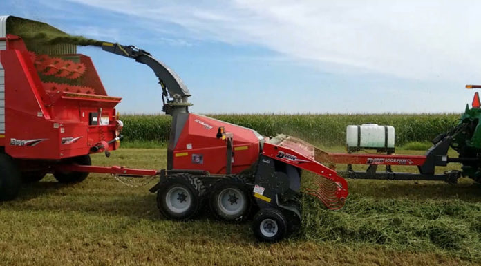 New model with new feedroll drive by an hydraulic motor, load-sensing electro-hydraulic functions powered by Power Beyond ports of the tractor, new header drive, ISOBUS controls, new “Stinger ready” spout, and much more.