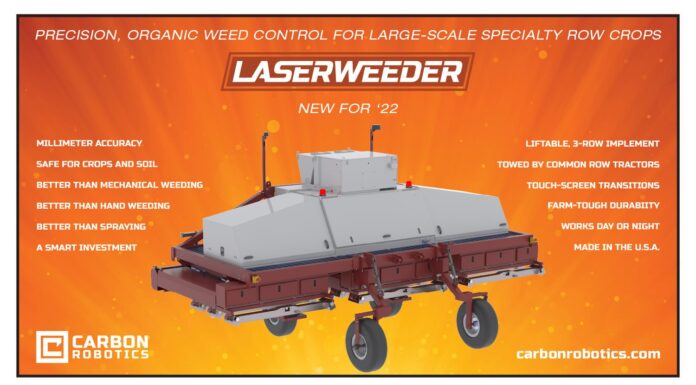 Carbon Robotics unveiled its 2022 LaserWeeder implement, an autonomous, laser weeding pull-behind robot that seamlessly attaches to the back of tractors. The new LaserWeeder is a precise, organic, and...