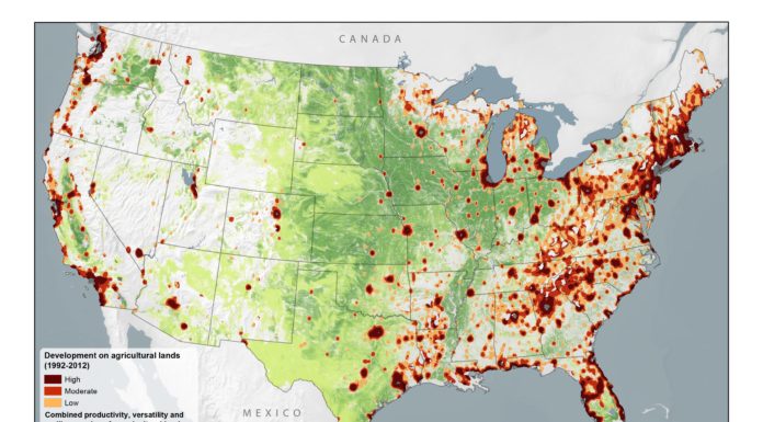 Conversion of agricultural land to urban and low-density residential development between 1992 and 2012