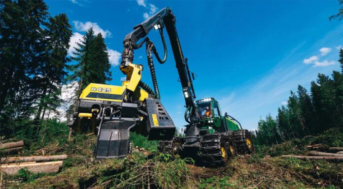 This fall, John Deere introduces the new, small-size H423 harvester head and the large-size H425 and H425HD. These new attachments replace the previous H413, H415, and H415HD models. Like its predecessor, these heads have a 4WD feed.